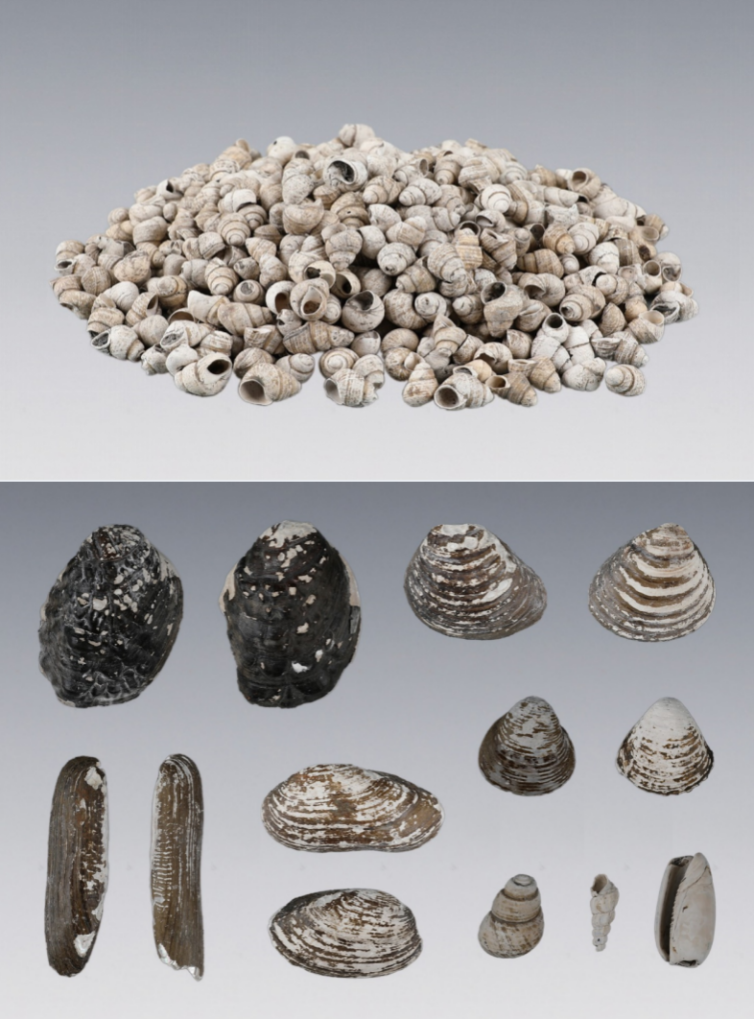 鮑家遺址內發現的水生軟體動物遺存。(江蘇省文物考古研究院供圖)