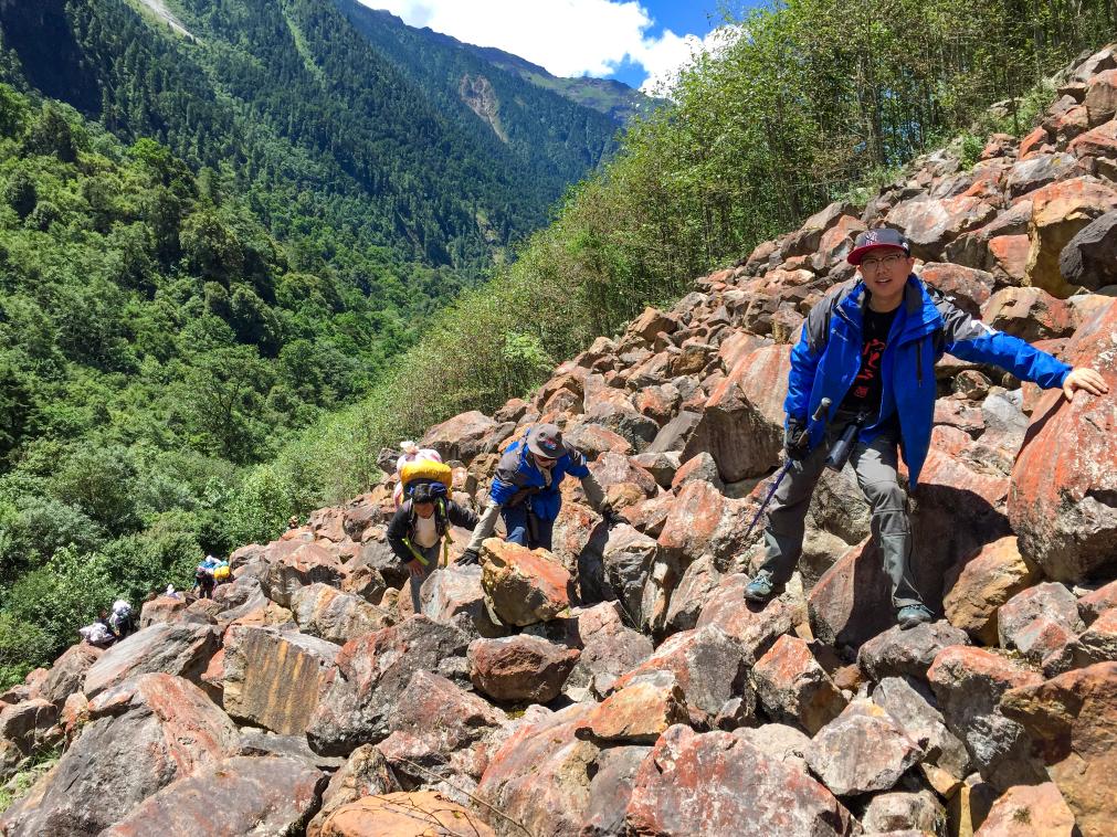 2015年8月4日,搜尋隊在前往若果冰川的路上。 新華社發(張瑾 攝)