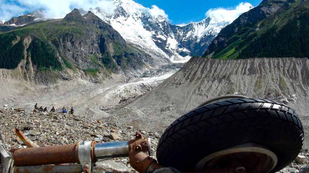 在西藏林芝波密縣若果冰川,駝峰航線C-87運輸機起落架靜靜地躺在冰磧上。(2015年8月5日攝)。