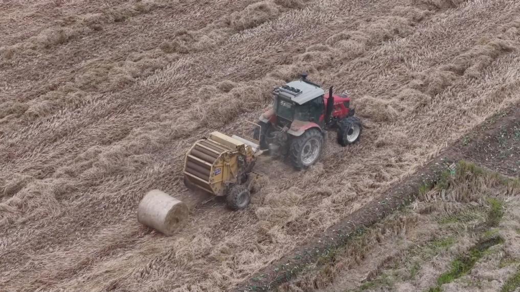 在鼎城區蒿子港鎮咸慶村,散落的水稻秸稈經抓取、壓縮、打捆,被送往就近的回收點。這些秸稈可以加工成飼料或有機肥,或用來制作可燃燒的生物顆粒。