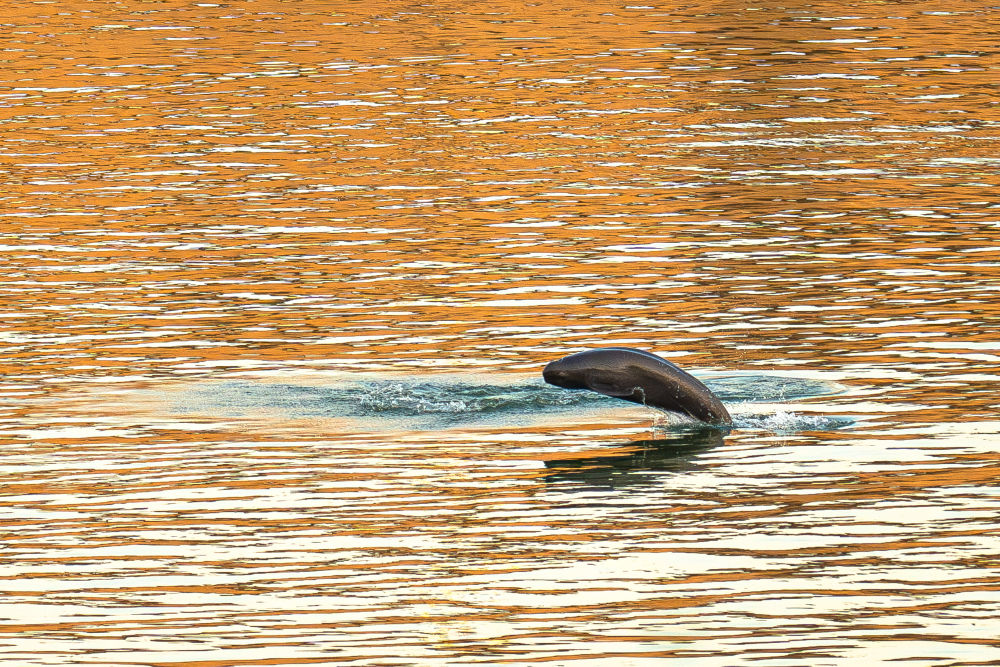 2025年1月5日,長江江豚在長江宜昌葛洲壩下游附近踏浪前行,與浪花共舞。新華社記者 肖藝九 攝