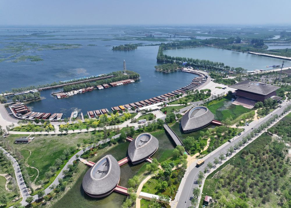 這是河北雄安新區白洋淀旅游碼頭景色(2024年5月8日攝,無人機照片)。新華社記者 牟宇 攝