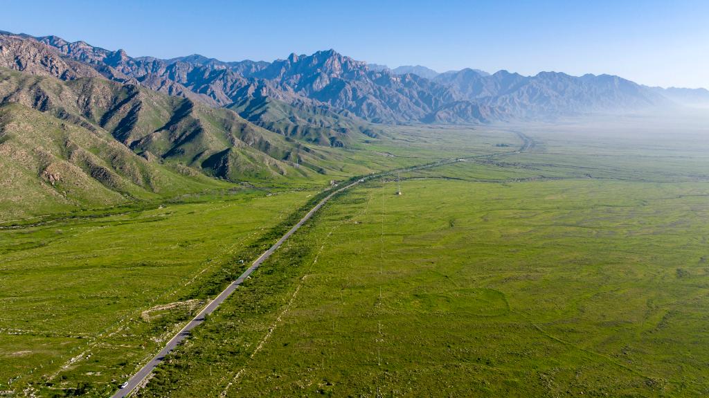 2025年7月29日,隨著降水增多,昔日戈壁荒灘的賀蘭山東麓沖積扇如今綠意盎然。新華社記者 王鵬 攝