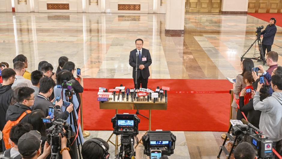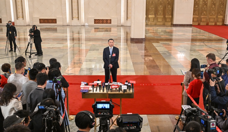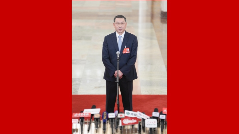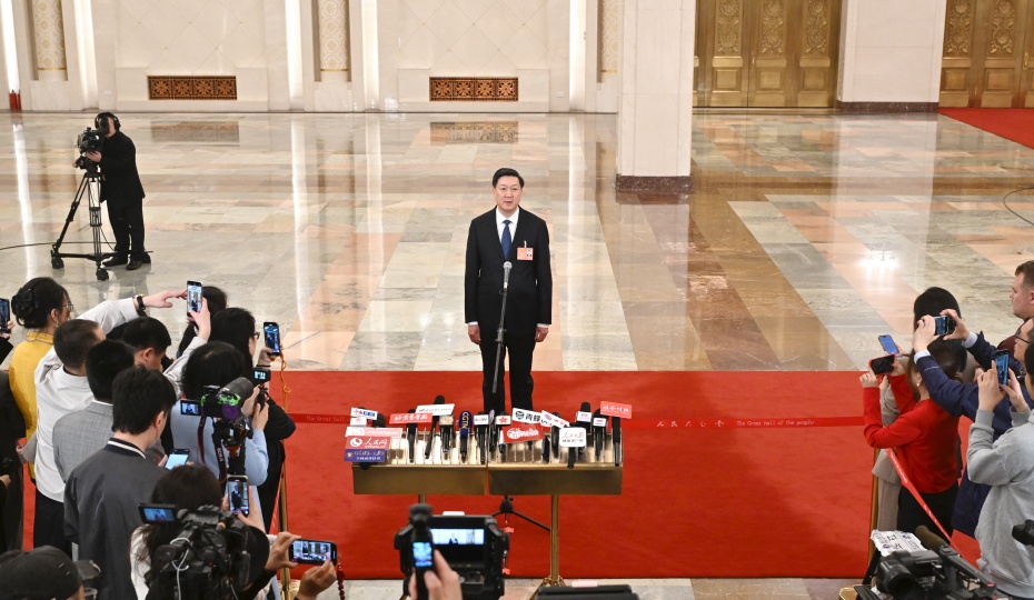 2025年3月11日下午閉幕會后,在人民大會堂北大廳舉行十四屆全國人大三次會議第三場“部長通道”集中采訪活動,邀請部分列席會議的國務院有關部委主要負責人接受采訪。