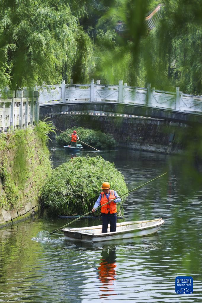 工作人員在重慶永川臨江河紅旗河段清漂(2022年5月7日攝)。新華社發(劉歡 攝)