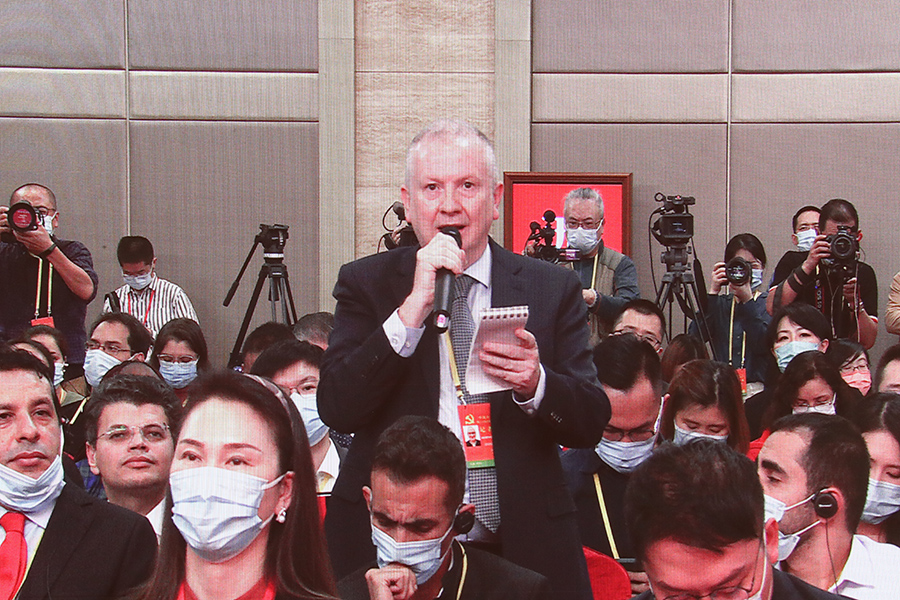 中國共產黨第二十次全國代表大會新聞發言人2022年10月15日(星期六)16時30分在人民大會堂舉行新聞發布會。圖為