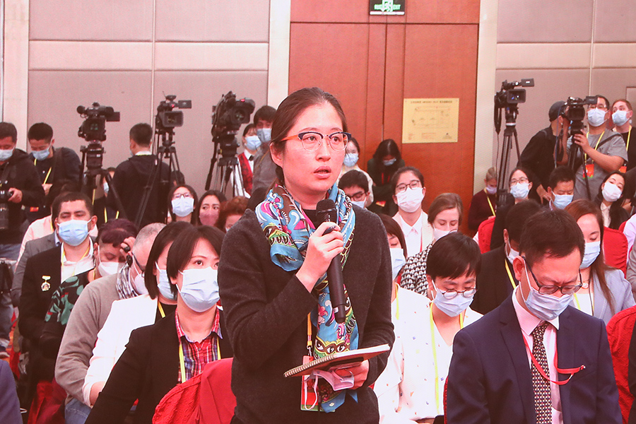 中國共產黨第二十次全國代表大會新聞發言人2022年10月15日(星期六)16時30分在人民大會堂舉行新聞發布會。圖為