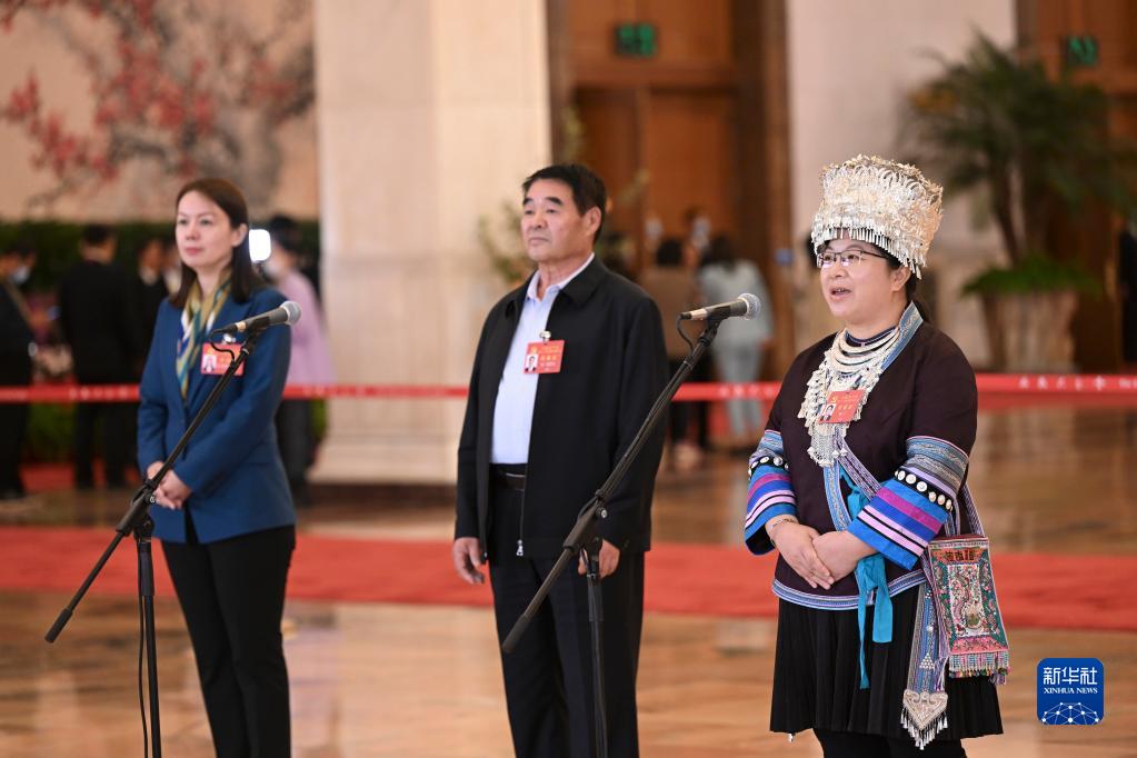 這是開幕會前,祖力亞提·司馬義、廷·巴特爾、楊寧代表(自左至右)接受采訪。