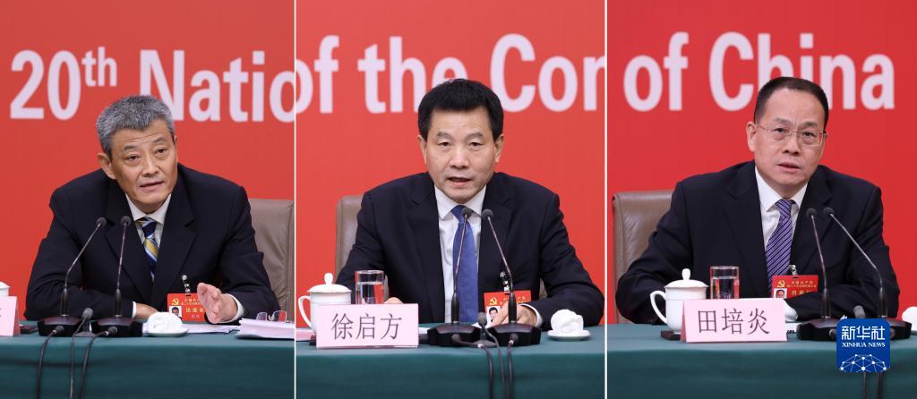 10月17日,中國共產黨第二十次全國代表大會新聞中心舉行記者招待會,請中央紀委副書記、國家監委副主任肖培,中央組織部副部長徐啟方,中央政策研究室副主任田培炎介紹堅定不移全面從嚴治黨,深入推進新時代黨的建設新的偉大工程有關情況,并回答記者提問(拼版照片)。