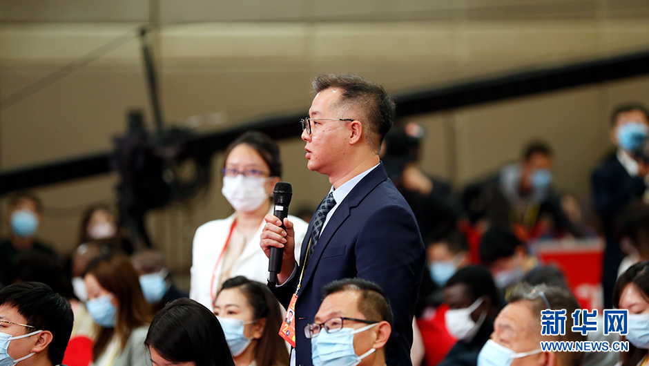 10月17日(星期一)15:00,二十大新聞中心在梅地亞新聞中心二層新聞發布廳舉辦第二場記者招待會。圖為中央廣播電視總臺記者在分會場提問。(新華網 陳杰 攝)