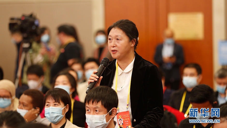 10月17日(星期一)15:00,二十大新聞中心在梅地亞新聞中心二層新聞發布廳舉辦第二場記者招待會。圖為學習時報記者在分會場提問。(新華網 陳杰 攝)