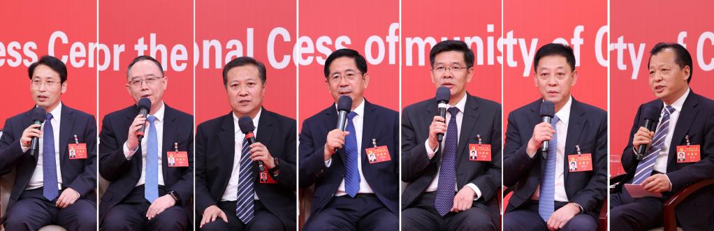 10月18日,中國共產黨第二十次全國代表大會新聞中心舉行集體采訪,請北京、天津、河北、山西、內蒙古、遼寧、吉林代表團新聞發言人出席,介紹代表團學習討論二十大報告情況,并回答記者提問(拼版照片)。