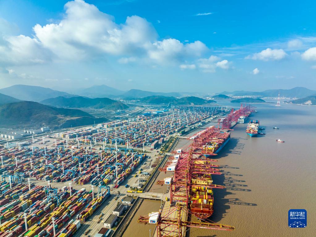 這是浙江寧波舟山港穿山港區(2021年12月24日攝,無人機照片)。新華社發(湯健凱 攝)