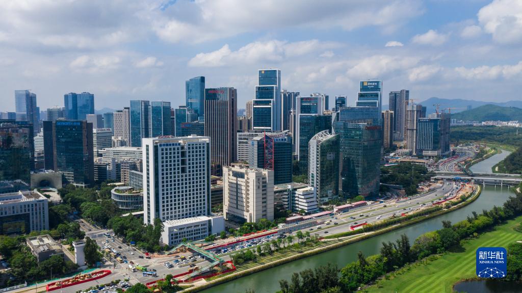 深圳市南山區大沙河畔的科技園(2020年9月27日攝,無人機照片)。新華社記者 毛思倩 攝