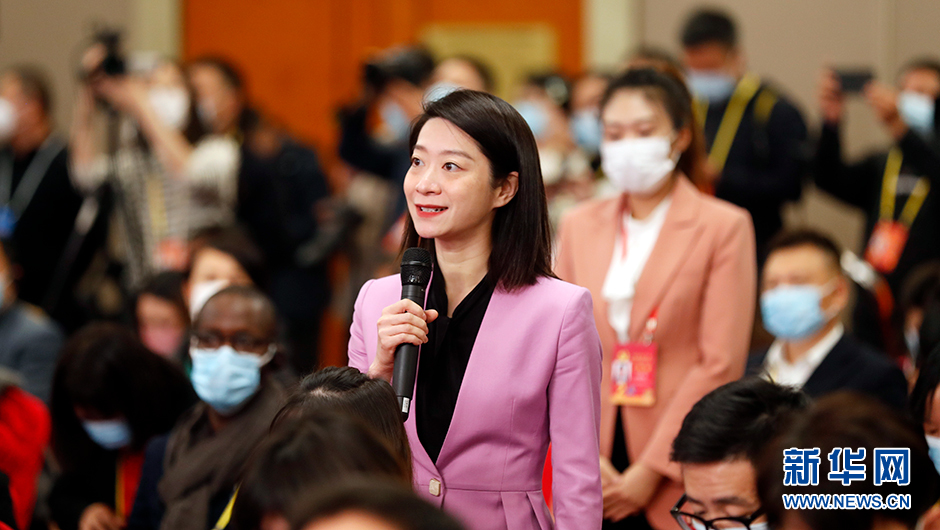 10月18日(星期二)15:00,二十大新聞中心在梅地亞新聞中心二層新聞發布廳舉辦第一場集體采訪。圖為北京廣播電視臺記者在分會場提問。(新華網 陳杰 攝)