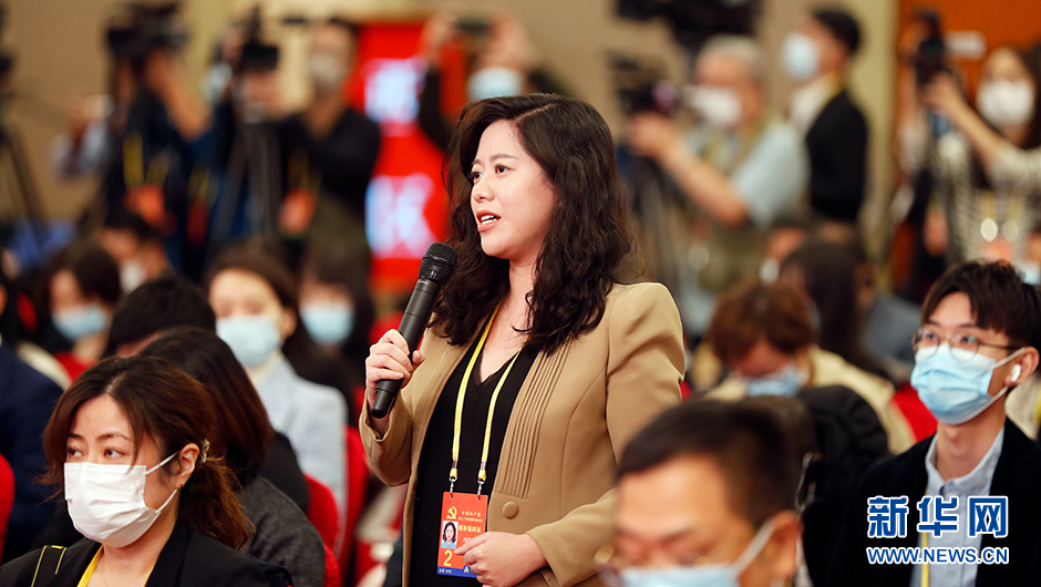 10月18日(星期二)15:00,二十大新聞中心在梅地亞新聞中心二層新聞發布廳舉辦第一場集體采訪。圖為中央廣播電視總臺記者在分會場提問。(新華網 陳杰 攝)