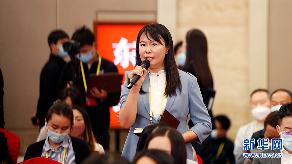 10月18日(星期二)15:00,二十大新聞中心在梅地亞新聞中心二層新聞發布廳舉辦第一場集體采訪。圖為香港商報記者在分會場提問。(新華網 陳杰 攝)