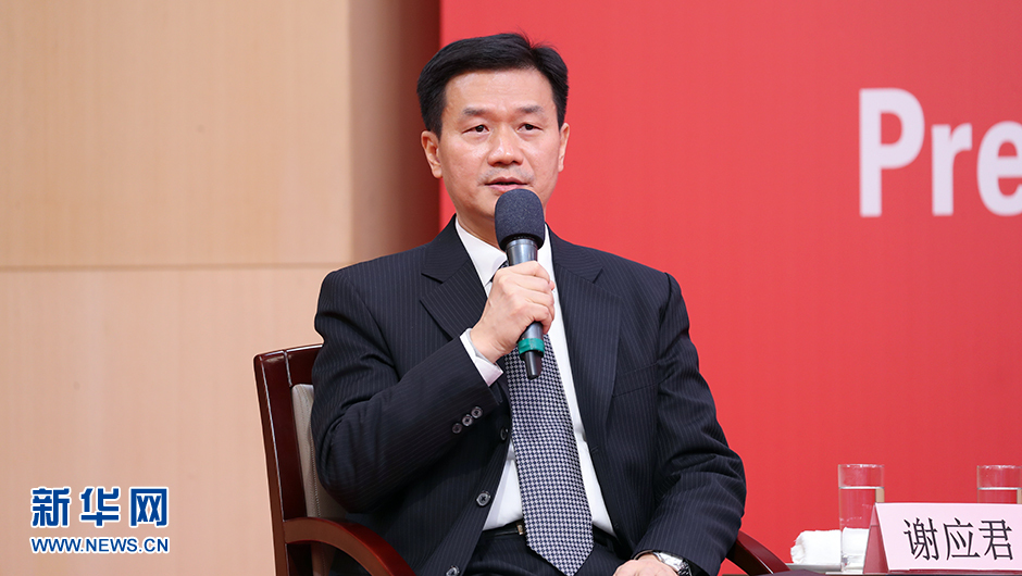 10月18日(星期二)19:30,二十大新聞中心在梅地亞新聞中心二層新聞發布廳舉辦第二場集體采訪。圖為二十大新聞中心負責人謝應君。(徐想 攝)