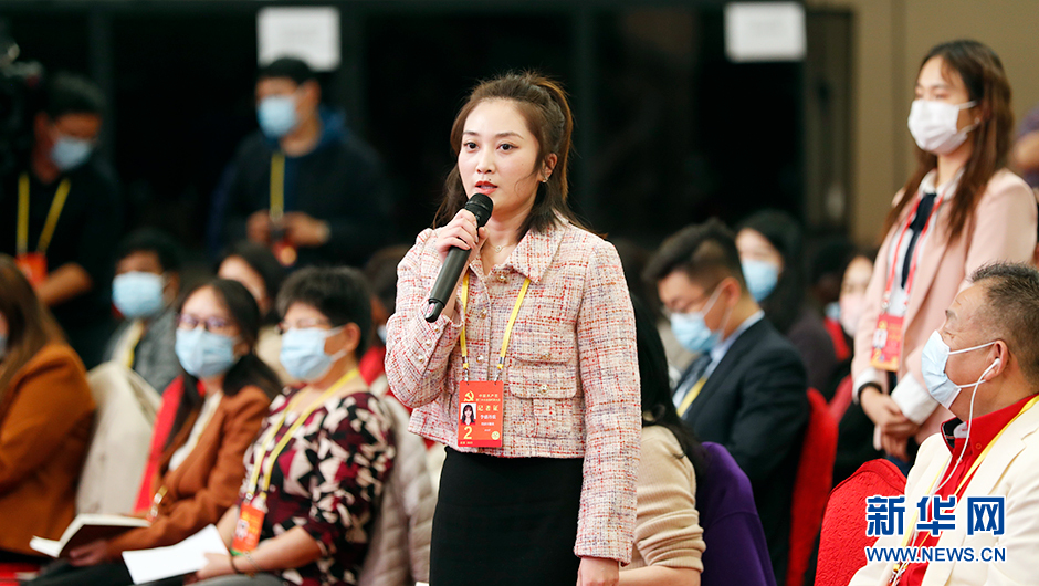 10月18日(星期二)19:30,二十大新聞中心在梅地亞新聞中心二層新聞發布廳舉辦第二場集體采訪。圖為經濟日報記者在分會場提問。(新華網 陳杰 攝)