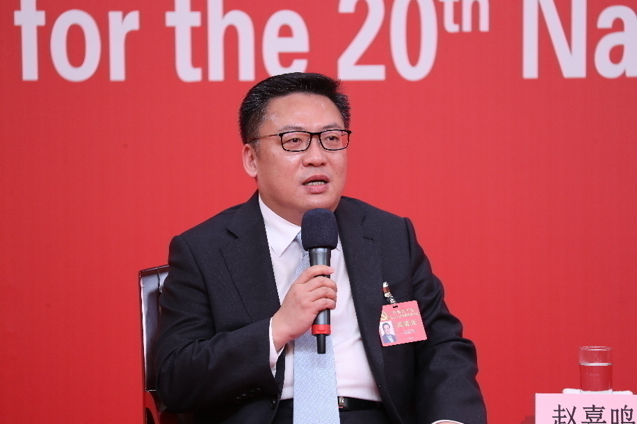 10月18日,中國共產黨第二十次全國代表大會新聞中心舉行集體采訪。黑龍江、上海、江蘇、浙江、安徽、福建、江西代表團新聞發言人出席,介紹代表團學習討論二十大報告情況,并回答記者提問。這是上海市委常委、宣傳部部長趙嘉鳴在回答記者提問。(新華網發)