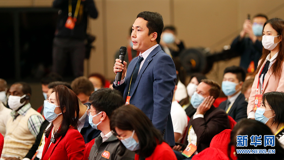 10月19日(星期三)15:00,二十大新聞中心在梅地亞新聞中心二層新聞發布廳舉辦第三場集體采訪。圖為中新社、中新網記者在分會場提問。(新華網 陳杰 攝)