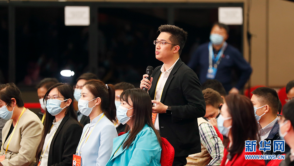 10月19日(星期三)15:00,二十大新聞中心在梅地亞新聞中心二層新聞發布廳舉辦第三場集體采訪。圖為越南國家電視臺記者在分會場提問。(新華網 陳杰 攝)