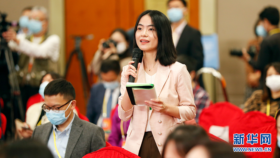 10月19日(星期三)15:00,二十大新聞中心在梅地亞新聞中心二層新聞發布廳舉辦第三場集體采訪。圖為人民日報記者在分會場提問。(新華網 陳杰 攝)