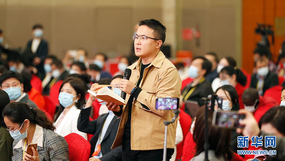 10月19日(星期三)19:30,二十大新聞中心在梅地亞新聞中心二層新聞發布廳舉辦第四場集體采訪。圖為人民日報記者在分會場提問。(新華網 陳杰 攝)