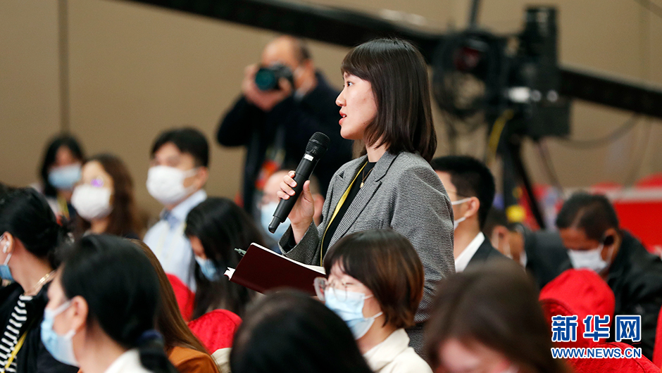 10月19日(星期三)19:30,二十大新聞中心在梅地亞新聞中心二層新聞發布廳舉辦第四場集體采訪。圖為中國綠色時報記者在分會場提問。(新華網 陳杰 攝)