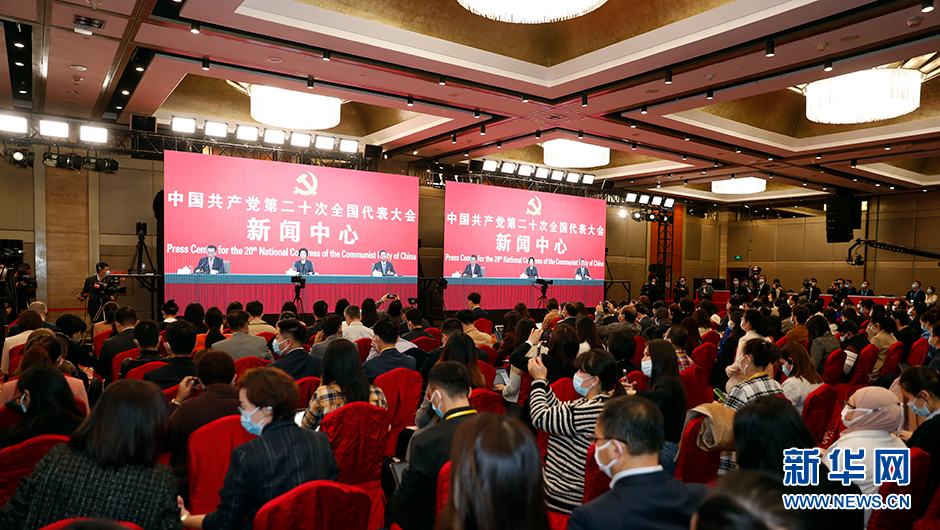 10月20日(星期四)10:00,二十大新聞中心在梅地亞新聞中心二層新聞發布廳舉辦第四場記者招待會。圖為記者招待會分會場現場。(新華網 陳杰 攝)