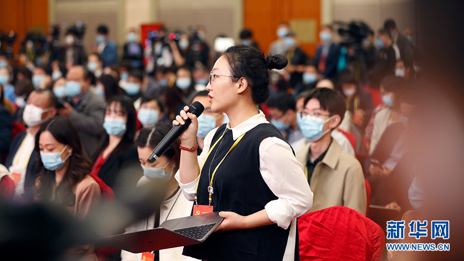 10月20日(星期四)10:00,二十大新聞中心在梅地亞新聞中心二層新聞發布廳舉辦第四場記者招待會。圖為北京青年報記者在分會場提問。(新華網 陳杰 攝)