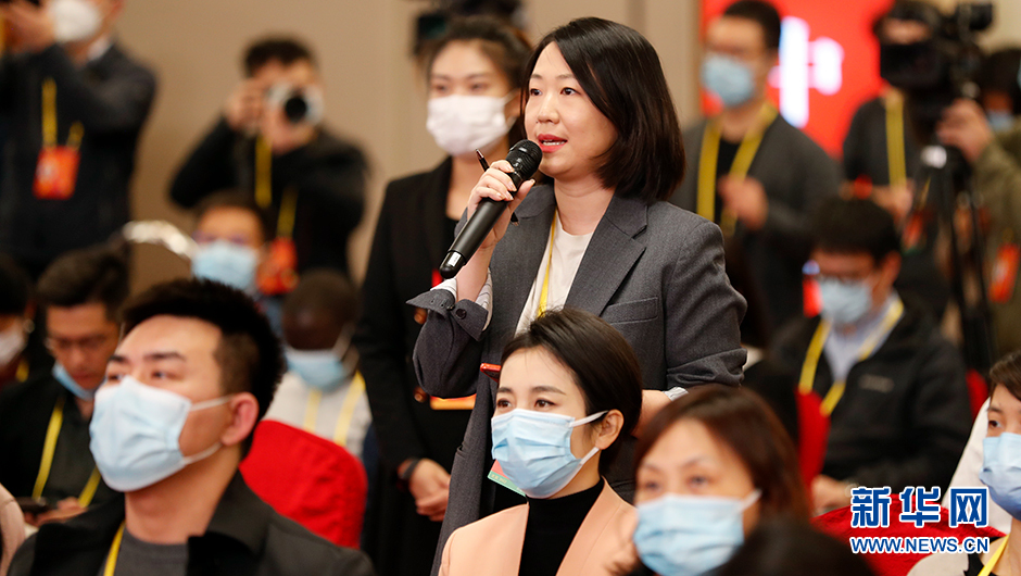 10月20日(星期四)19:30,二十大新聞中心在梅地亞新聞中心二層新聞發布廳舉辦第五場集體采訪。圖為香港經濟日報記者在分會場提問。(新華網 陳杰 攝)