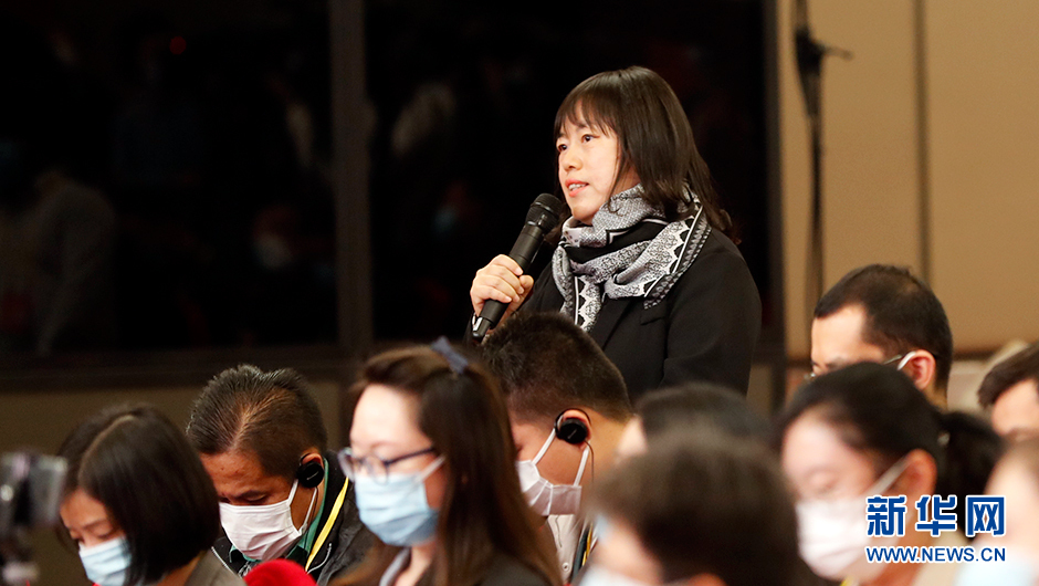 10月20日(星期四)19:30,二十大新聞中心在梅地亞新聞中心二層新聞發布廳舉辦第五場集體采訪。圖為香港經濟導報記者在分會場提問。(新華網 陳杰 攝)