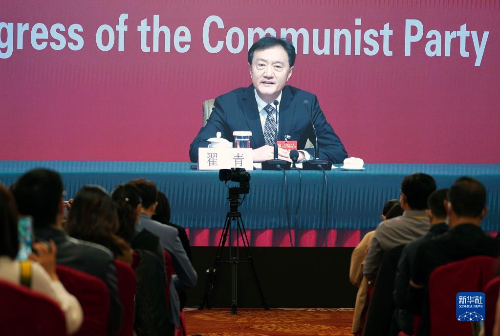 10月21日,中國共產黨第二十次全國代表大會新聞中心舉行記者招待會。生態環境部黨組成員、副部長翟青圍繞“建設人與自然和諧共生的美麗中國”主題與記者交流。