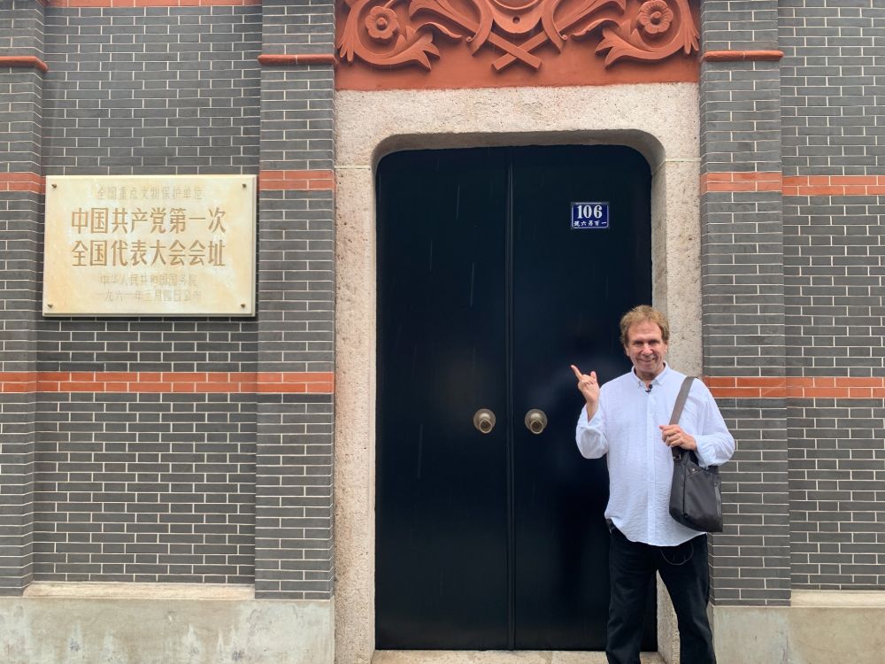 他曾在上海中共一大會址前拍照留念