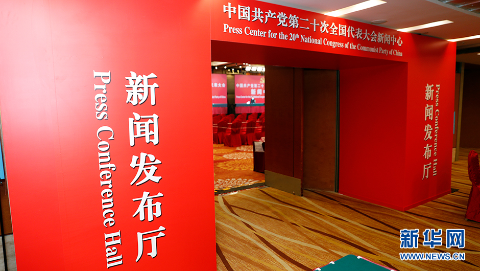 10月21日(星期五)10:00,二十大新聞中心將舉辦第五場記者招待會。圖為記者招待會前分會場。(新華網 陳杰 攝)