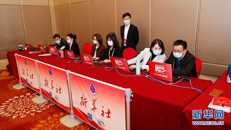 10月21日(星期五)10:00,二十大新聞中心將舉辦第五場記者招待會。圖為記者在分會場工作。(新華網 陳杰 攝)