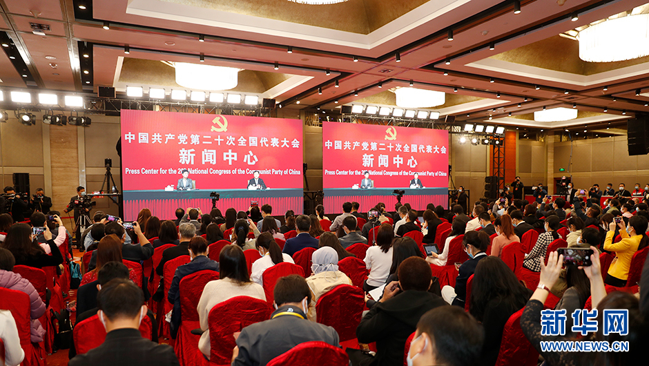 10月21日(星期五)10:00,二十大新聞中心舉辦第五場記者招待會。圖為記者招待會分會場現場。(新華網 陳杰 攝)
