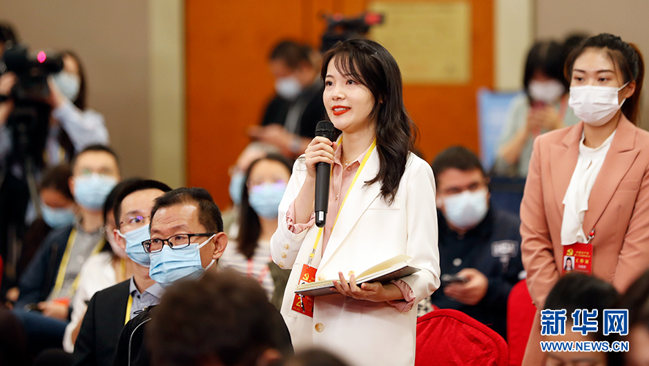 10月21日(星期五)10:00,二十大新聞中心舉辦第五場記者招待會。圖為中國環境報記者在分會場提問。(新華網 陳杰 攝)