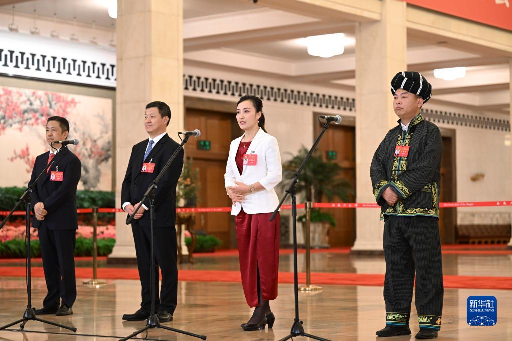 這是閉幕會后,周海江、李國璋、張燕、施金通代表(自左至右)接受采訪。