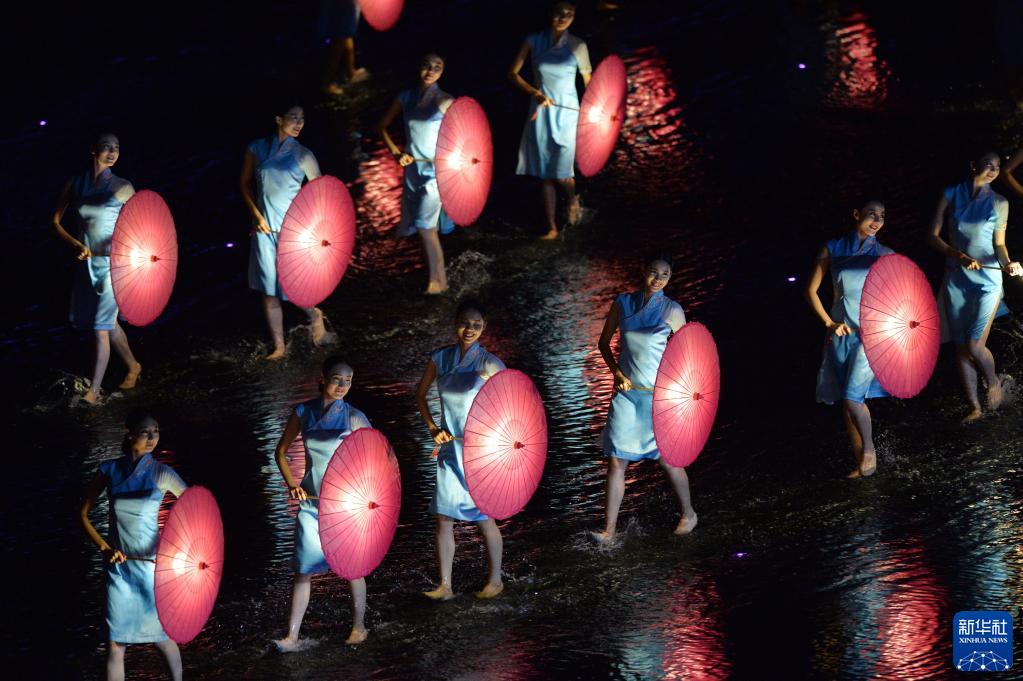 演員在西湖景區進行的G20杭州峰會文藝演出《最憶是杭州》中表演《難忘茉莉花》(2016年9月4日攝)。新華社記者 黃宗治 攝