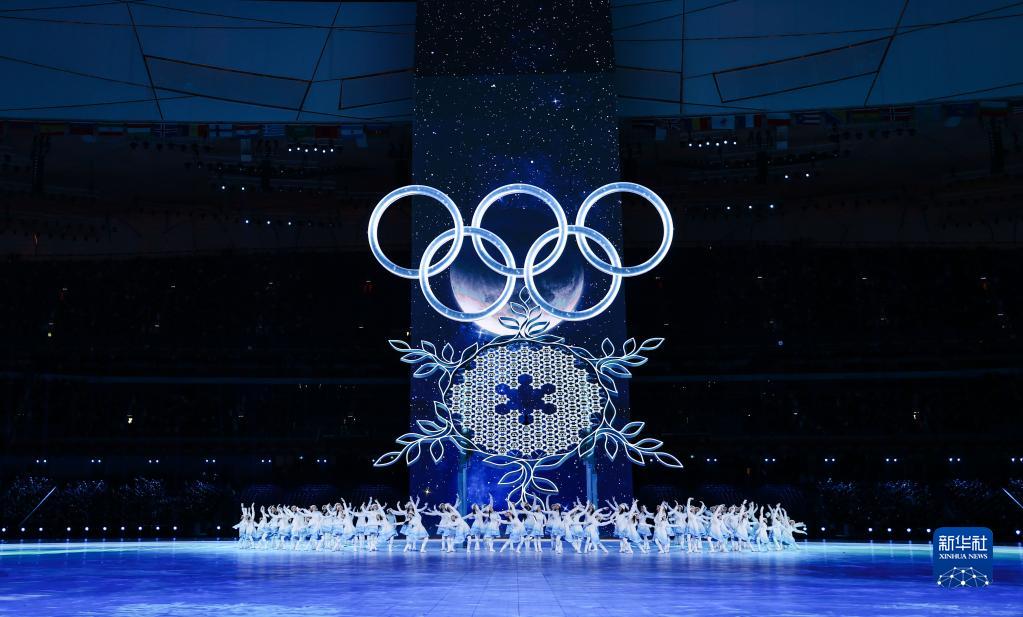 2022年2月4日,第二十四屆冬季奧林匹克運動會開幕式在北京國家體育場舉行,這是開幕式上的“構建一朵雪花”環節。新華社記者 曹燦 攝