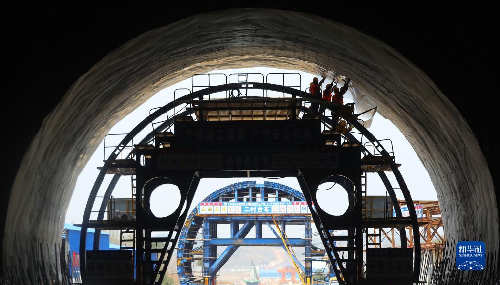 中鐵九局工程技術人員在撫順市蘭山隧道內施工,沈白高鐵全線掀起施工大干熱潮(4月20日攝)。新華社記者 楊青 攝