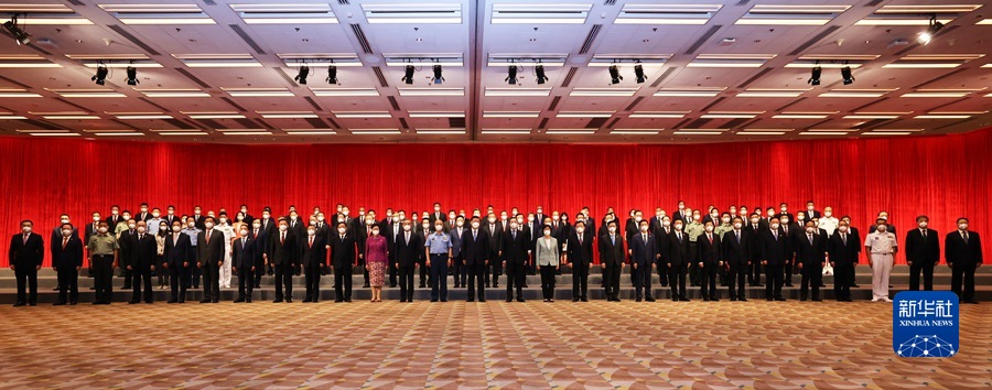 6月30日下午,國家主席習近平在香港會見香港特別行政區行政、立法、司法機關負責人。新華社記者 鞠鵬 攝