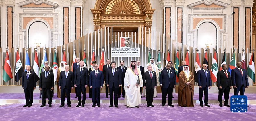 當地時間12月9日下午,首屆中國-阿拉伯國家峰會在沙特首都利雅得阿卜杜勒阿齊茲國王國際會議中心舉行。國家主席習近平和沙特王儲兼首相穆罕默德、埃及總統塞西、約旦國王阿卜杜拉二世、巴林國王哈馬德、科威特王儲米沙勒、突尼斯總統賽義德、吉布提總統蓋萊、巴勒斯坦總統阿巴斯、卡塔爾埃米爾塔米姆、科摩羅總統阿扎利、毛里塔尼亞總統加茲瓦尼、伊拉克總理蘇達尼、摩洛哥首相阿赫努什、阿爾及利亞總理阿卜杜拉赫曼、黎巴嫩總理米卡提等21個阿盟國家領導人以及阿拉伯國家聯盟秘書長蓋特等國際組織負責人出席峰會。