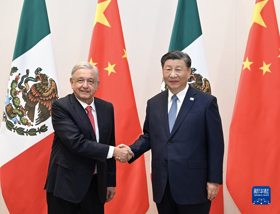 當地時間11月16日上午,國家主席習近平在舊金山會見墨西哥總統洛佩斯。