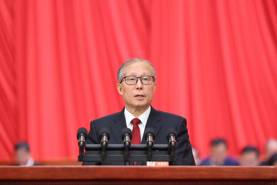 3月5日,第十四屆全國人民代表大會第二次會議在北京人民大會堂開幕。受全國人大常委會委托,全國人大常委會副委員長李鴻忠作關于國務院組織法修訂草案的說明。新華社記者 劉衛兵 攝