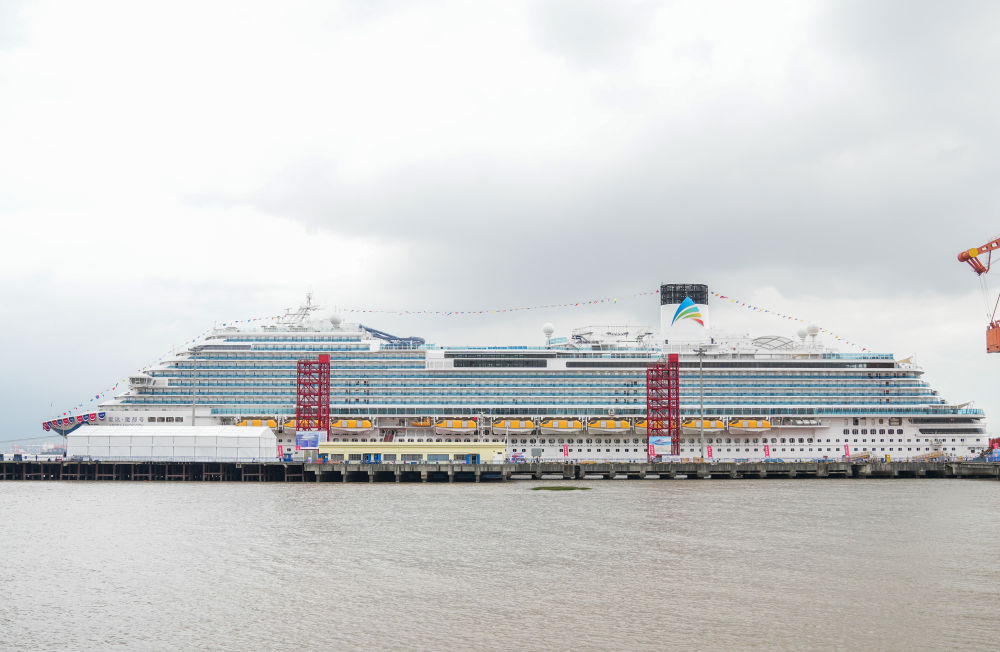 這是2023年11月4日拍攝的國產大型郵輪“愛達·魔都號”。當日,我國國產首艘大型郵輪“愛達·魔都號”正式命名交付。