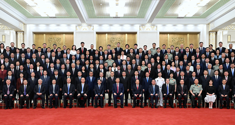 6月24日,全國科技大會、國家科學技術獎勵大會和中國科學院第二十一次院士大會、中國工程院第十七次院士大會在北京人民大會堂隆重召開。會前,習近平等領導同志親切會見國家科學技術獎獲獎代表,并同大家合影留念。新華社記者 謝環馳 攝