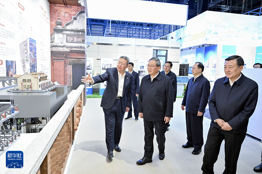 在觀看上海建國東路歷史風貌保護及城市更新工程、北京樺皮廠胡同8號“原拆原建”模塊化好房子等展示時,李強表示,城市更新是當前城市建設中面臨的重要任務,蘊藏著巨大的發展潛力。要把改善民生和擴大內需結合起來,加強各方面協同合作,推進規劃創新,完善標準規范,加大好房子建設政策支持力度,抓好城鎮老舊小區、城中村和危舊房改造,改善人居環境。在城市更新中要充分聽取和尊重群眾意見,加強歷史文化保護傳承,共建和諧城市,共享美好生活。